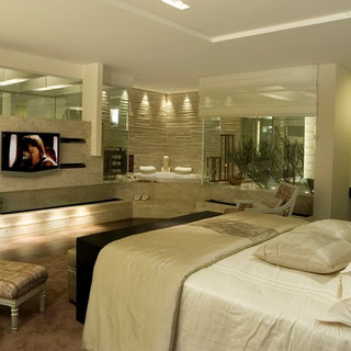 4º Cozinha: Claro que um quarto não comporta uma geladeira, mas uma boa opção é um mini-frigobar para guarda sucos, água, um sanduíche, para assaltar a geladeira a noite ou para dias de preguiça de ir até a cozinha.